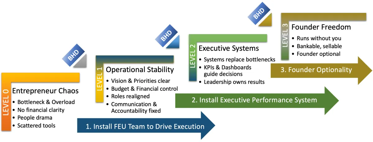 We’ve guided hundreds of founder-led businesses through a proven path to regain control and momentum. Here's what the journey looks like: